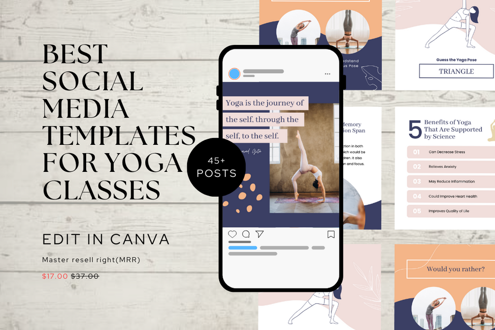 You’ll receive a collection of customizable social media templates designed specifically for yoga brands, including templates for class announcements, inspirational quotes, pose tutorials, and more.